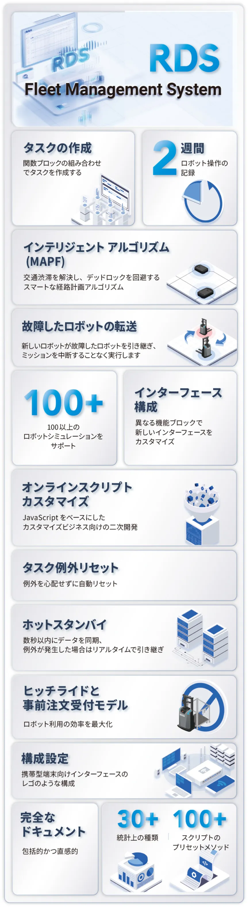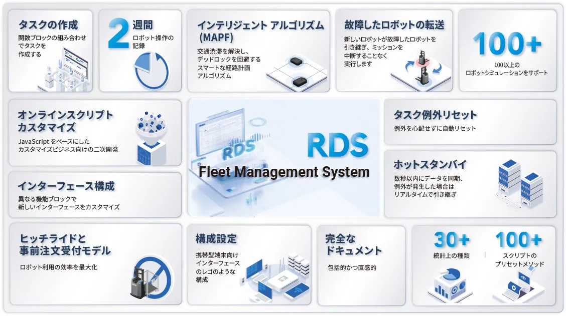 RDSフリートマネジメントシステムは搬送ロボットおよび工場自動化物流機器のための新世代の配送システムです。
