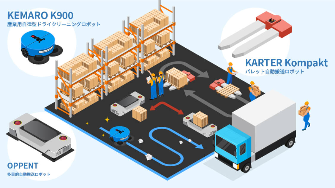 また、無人搬送車システムの最も重要な国際規格とみなされている国際安全規格ISO 3691-4(JIS D6802:2022)に準拠したAMRを中心に取り扱っているため、人を感知して連携できる仕様です。人と複数ロボットの協働による、安全かつ安心な搬送作業や清掃作業をお約束します。 - できること4 ランニングコスト・イニシャルコストの低減