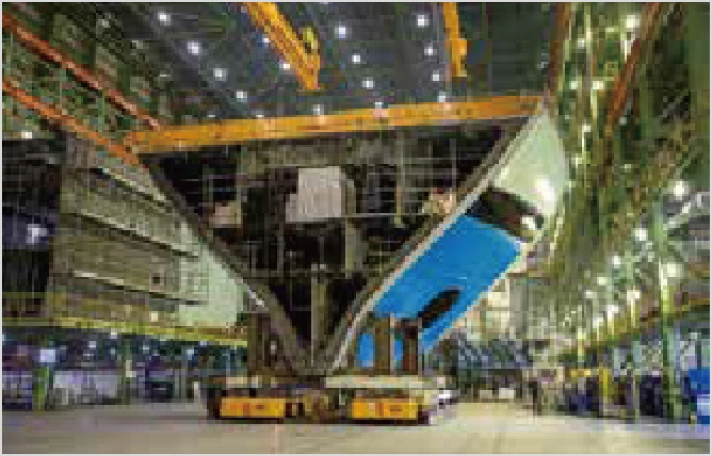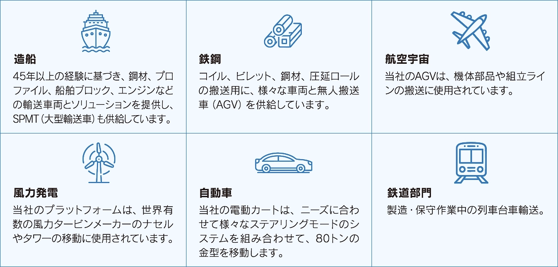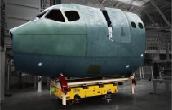製造工程における工具、金型、航空機のサブアセンブリの移動、整備工程における航空機エンジンの輸送、格納庫内でのスケートを使用した航空機の移動。