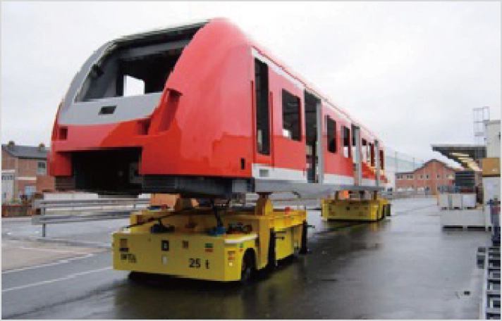 貨車と列車の搬送用に同期化された2台の搬送カート。製造・保守作業中の列車台車輸送に使用します。