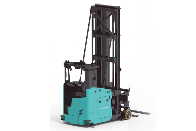 ツメが前方・左右の3方向に向くため限られたスペースでのパレットの移動やラックへの積載に適しています。最大9,000mmまでリフトアップ可能。